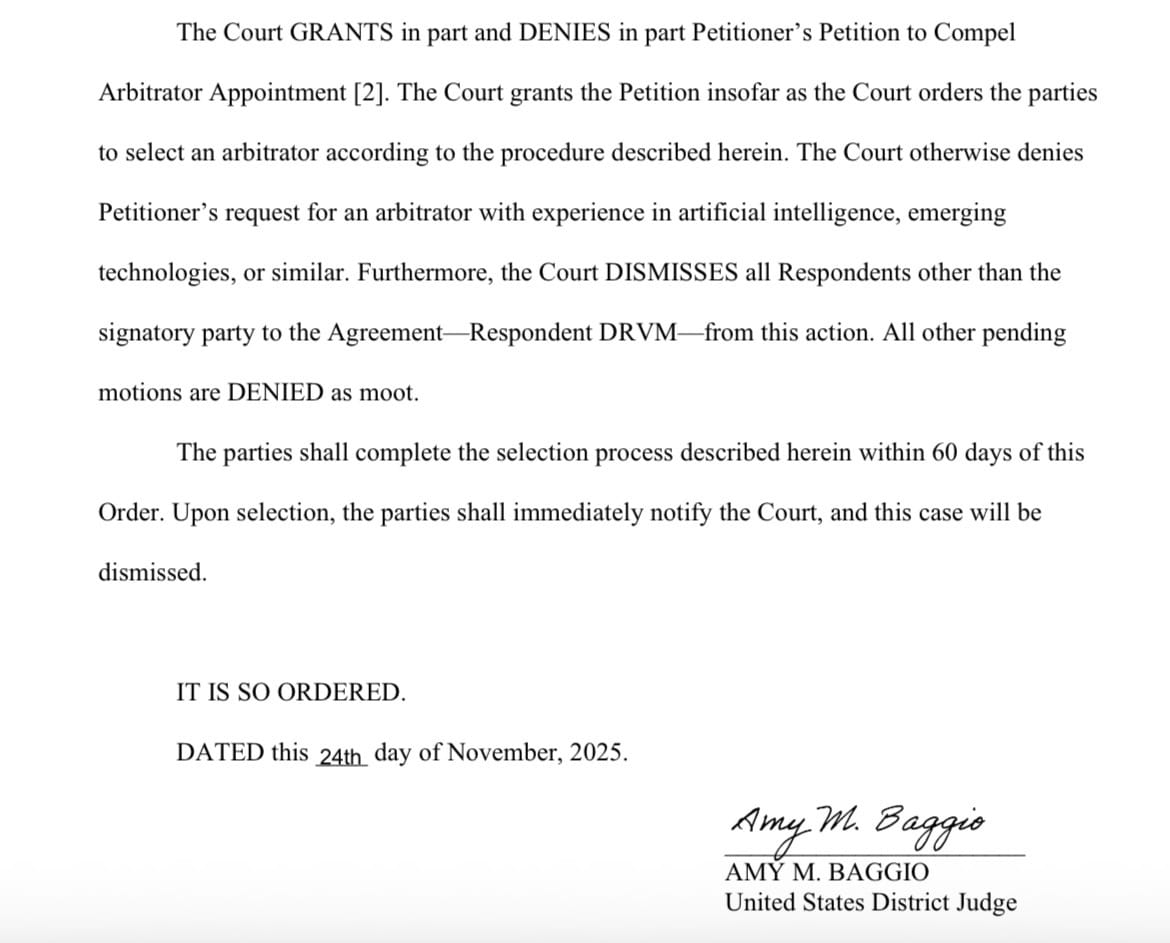 The Court ruled that only DRVM, the small shell company that appeared on my paystubs, can be forced into arbitration. None of the parent companies. None of the upstream entities. None of the people controlling the structure behind the scenes.